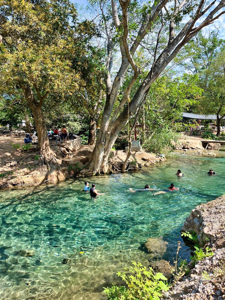 En general el lugar es rústico, esta acondicionado y hay muchas plantas que decoran diversas zonas. El agua es muy cristalina puesto que hay varios manantiales que van alimentando el rio, es perfecta para nadar y refrescarse. Como yo fui en diciembre estaba ligeramente fría pero soportable, si ustedes prefieren una temperatura mas tibia o que haga mas calor, consideren los meses de marzo, abril y mayo que es una temporada mas cálida.