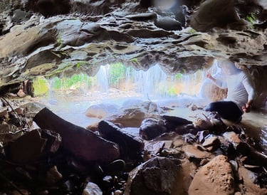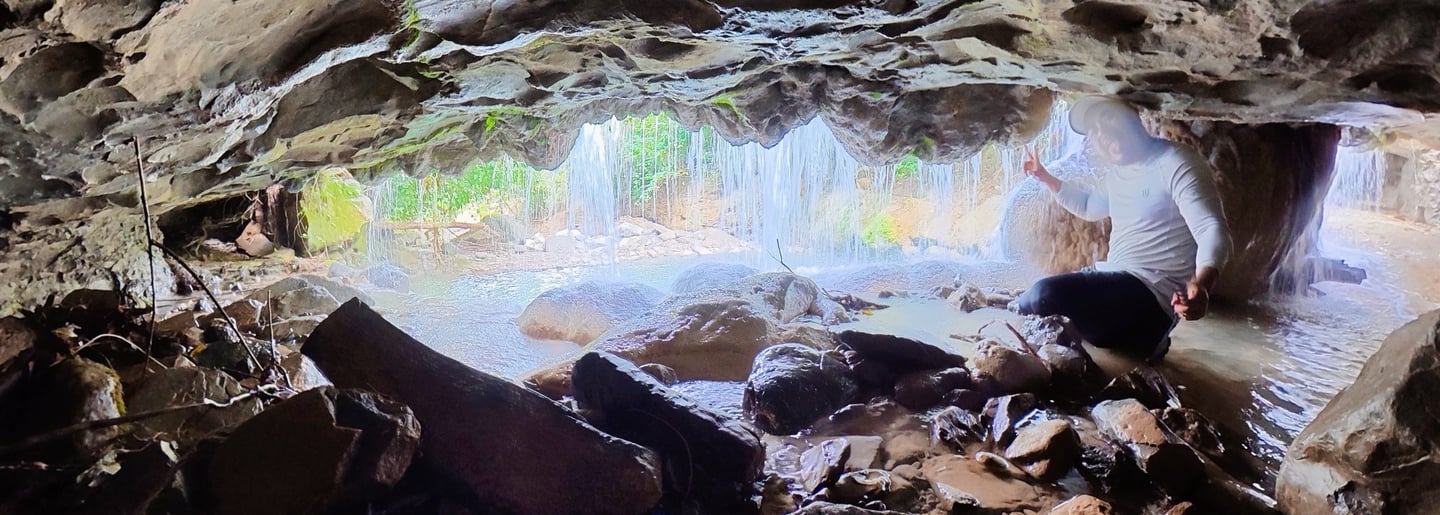 En la segunda cascada, pudimos meternos detrás de la cortina de agua en una pequeña cueva que hay la verdad fue divertido.