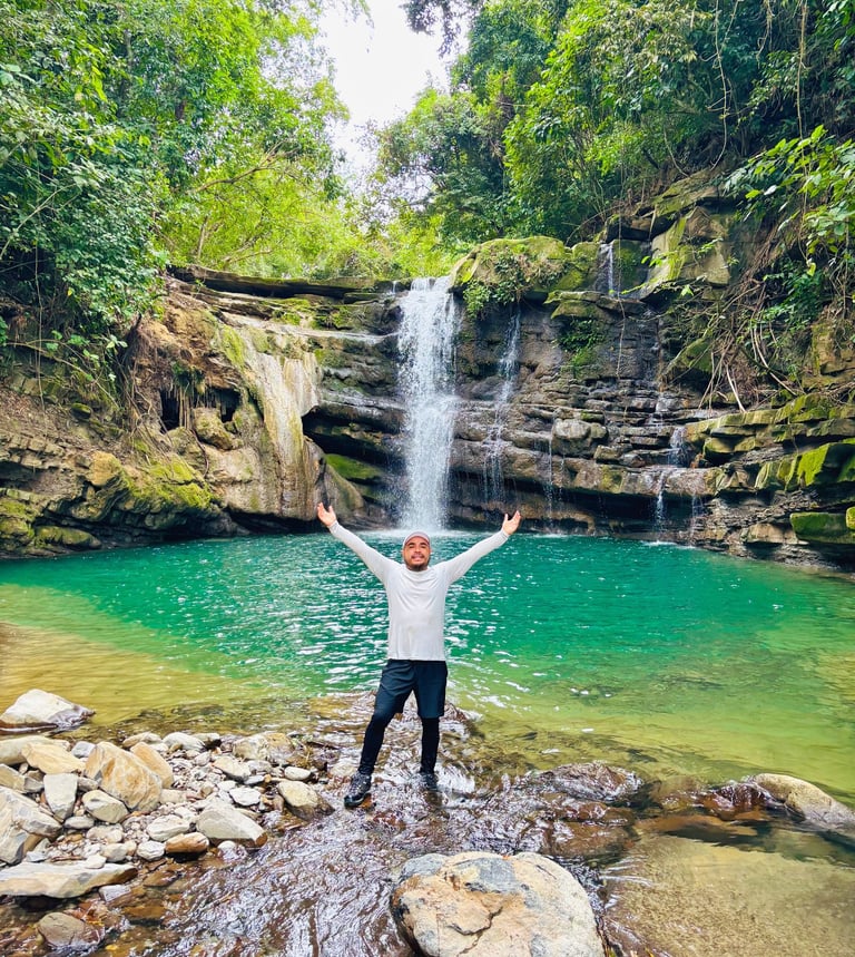 Llegamos a la tercer cascada la mas alta de todas quizá unos 14m de caida de agua, aquí estuvimos un rato, la poza era grande, disfrutamos de la vista e hicimos algunos saltos, fue la mejor manera de despedirnos del Río.