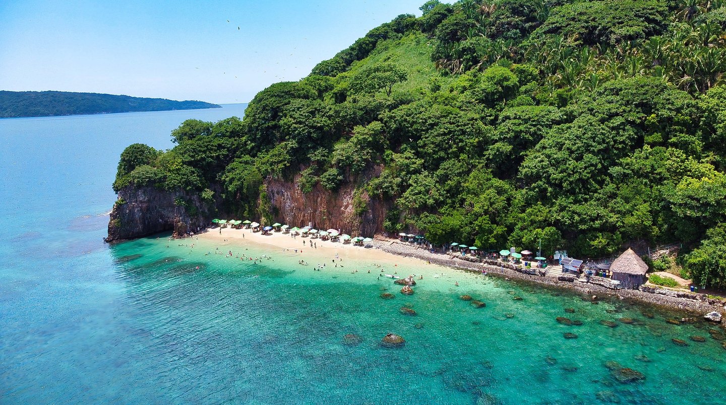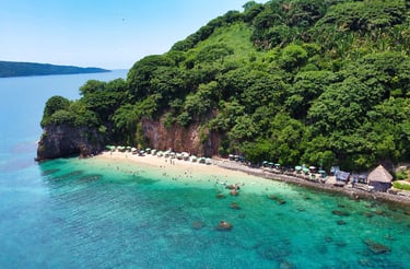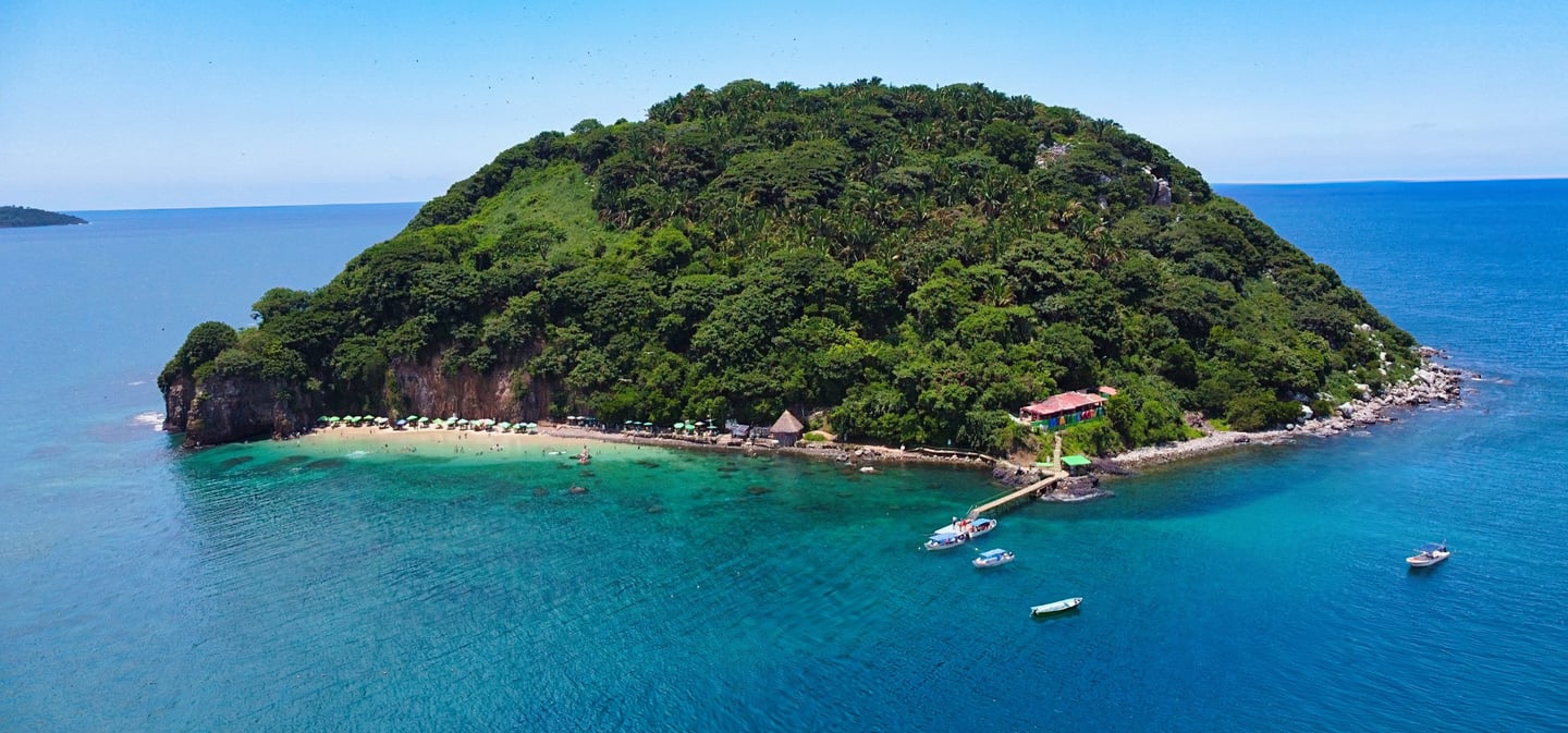 Mi parte favorita de guayabitos es esta isla, para llegar debemos tomar una lancha desde Guayabitos, el costo del tour es de $300 por persona, en menos de media hora llegaras a la isla el coral la cual sorprende con sus tonos y parece ser un cerro en medio del mar, tupido de una verde vegetación y muchas aves. En esta isla les recomiendo quedarse, aquí hay algunas sombrillas con mesas y cobran $300 por mesa, si hay que gastar mas pero en opinión lo vale ya que su playa es pequeña pero muy hermosa los tonos están preciosos azules, el agua super Clarita y el oleaje tranquilo lo cual es excelente para niños o personas que no sepan nadar. De hecho la playa de la isla es mas bonita que guayabitos pero mucho mas pequeña por lo que les recomiendo que lleguen temprano para que agarren una buena mesa, realmente aquí pueden estar todo el día así que vayan preparados, en la isla rentan snorkel y hay servicio de restaurante por lo que no les faltara nada.