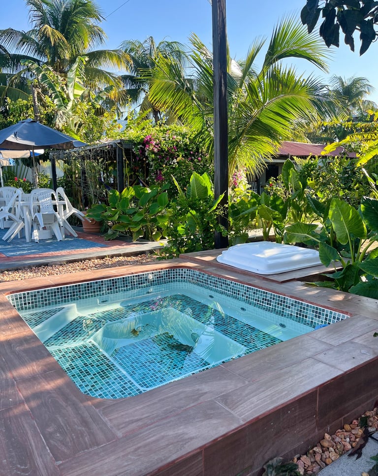 Yo me hospede en Casa del Sol, lugar que se encuentra en una zona un poco aislada del ruido, perfecto para el descanso. El hotel cuenta con cocina, comedor, áreas verdes, alberca, jacuzzi y otras amenidades que lo vuelven una excelente opción para el descanso.