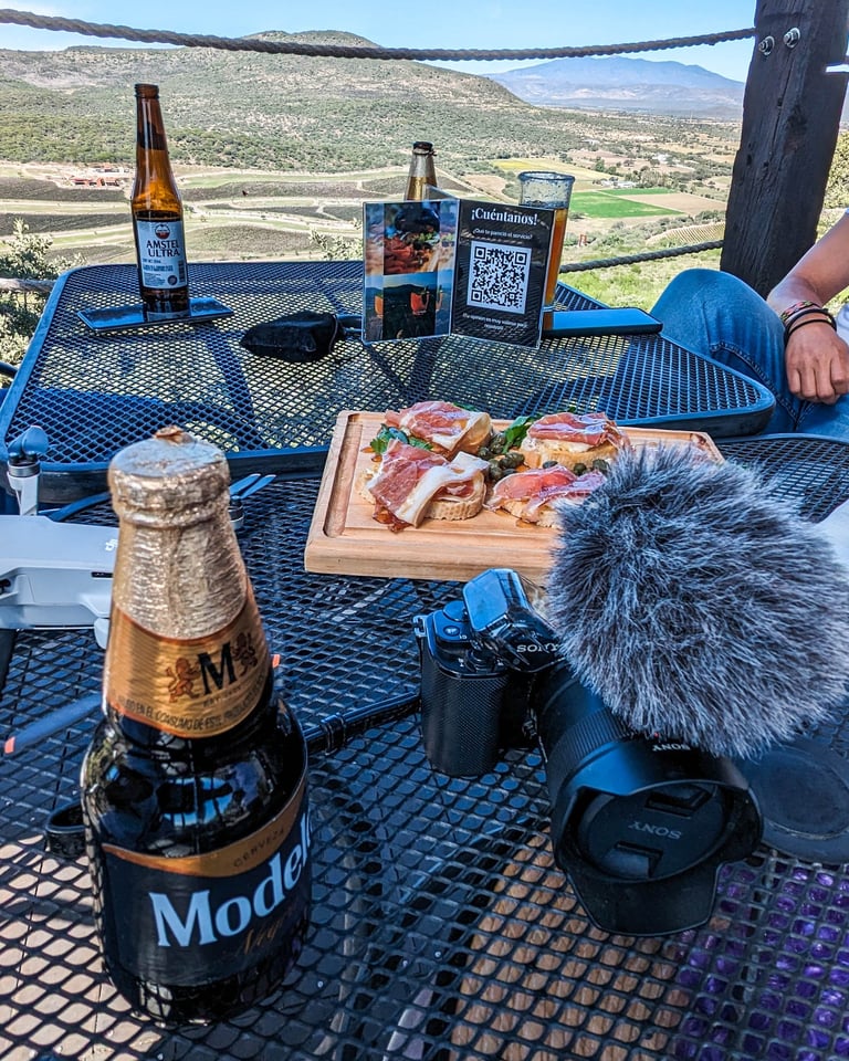 Este restaurante goza de una vista privilegia que te relaja y te cautiva ya que en 360 grados puedes ver todo el terreno del viñedo así como vistas más lejanas sin duda me encanto. Hay barra, restaurante, mesitas con sombra y música relax lo cual ambienta chido el momento. En cualquiera de los restaurantes que vayas debes reservar antes de tu visita.