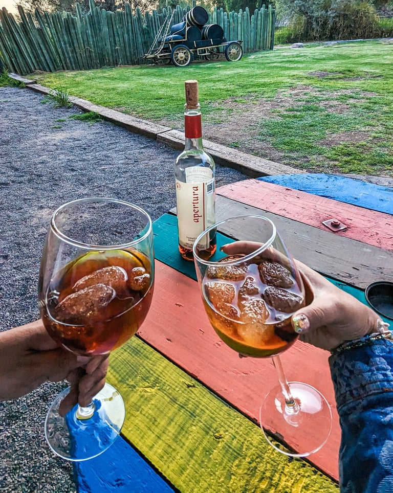 Aquí nos pedimos un vino vermut que se llama apertura, este vino lo sirven con hielo y rodajas de naranja en un vaso old fashioned y libera sabores a hierbas, en lo personal me gusta mucho y este vino es el más económico de la carta con un costo de $350 y también hay tintos y otros de hecho todos los precios están en su página web https://vinedosazteca.com/
